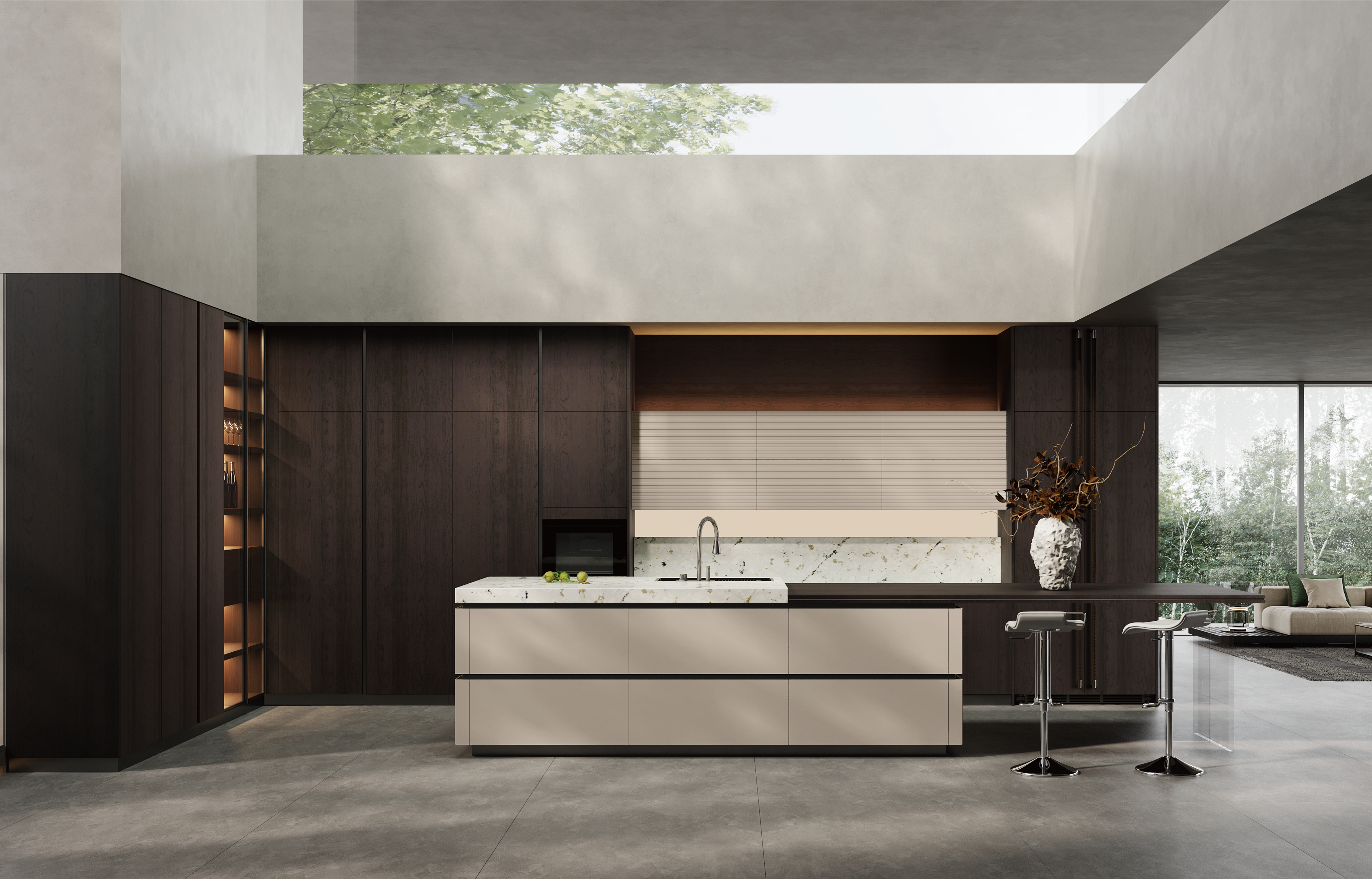 通过超凡国际厨柜量体裁柜,定制出适合主厨下厨的烹饪区和洗涤区的舒适高度。